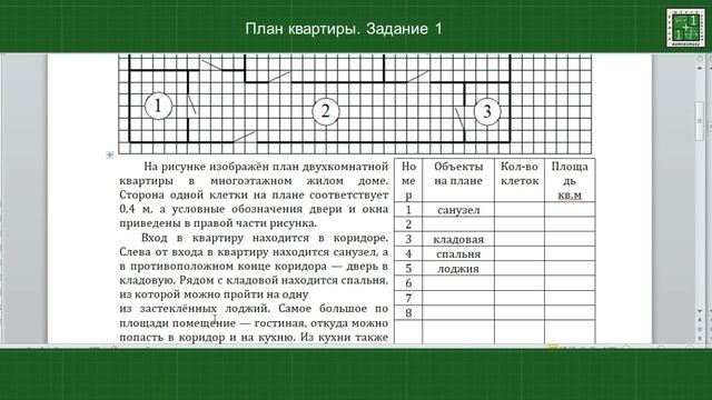 ОГЭ математика. План квартиры. Задание 1