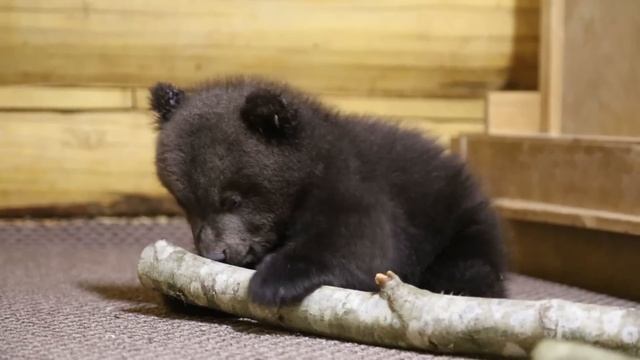 Медвежата до возраста 3-3,5 месяцев содержались в помещении, имитирующем берлогу: сухо, темно, тихо и тепло. Мы выкармливали малышей из бутылочек с соской сначала каждые два часа, а по мере их роста, интервал между едой потихонечку увеличивался. Первые два месяца жизни медвежата бОльшую часть времени спали, просыпаясь лишь для приема раннего завтрака/завтрака/второго завтрака/обеда/полдника/второго полдника/ужина/позднего ужина и т.д. В возрасте одного месяца медвежата начали пытаться делать свои первые шаги, забавно переваливаясь с боку на бок, и даже играть друг с другом. Но ни то, ни другое у них еще толком не получалось: неуклюжие лапы не способны были пока еще удержать их большие попы и пухлые животики, да и играть долго не выходило – буквально через несколько минут медвежья детвора засыпала сладким младенческим сном. Но уже через пару недель медвежата гораздо крепче и увереннее стояли на лапах, и игры у них стали более активными и продолжительными. А еще через пару недель медвежьи малыши начали осваивать «тренажер» - кто зубами, кто когтями, а кто и по назначению, пытаясь вскарабкиваться на него, таким образом получая первые навыки лазания по деревьям. Когда медвежата уже более-менее уверенно начали ходить, мы стали учить их есть из мисок, что необходимо было сделать до их перевода в лесные вольеры. В этом году этот процесс прошел достаточно быстро и спокойно, без особых жертв с нашей стороны (даже в таком маленьком возрасте медвежата могут достаточно ощутимо «выразить» свой протест острыми молочными зубами или когтями), и без больших потерь каши – это еще один способ «озвучить» свое несогласие есть из миски, а не из бутылочки с соской – перевернуть миску с кашей, расплескав ее по всему полу. Мы регулярно устраивали медвежатам банные дни, что очень важно для них в этом возрасте. Также мы регулярно взвешивали их и проводили осмотры, а также необходимое лечение, занося все данные об их состоянии, о количестве съеденного, и пр. в индивидуальные журналы. Все это необходимо делать для отслеживания состояния их здоровья для возможности быстрого реагирования в случае его ухудшения. Надо сказать, что в этом году медвежата неоднократно давали нам поводы для переживаний. Чук и Гек поступили, когда им не было еще и месяца, а в этом возрасте крайне сложно выходить медвежат. Братья отказывались от еды, у Чука была поранена нежная кожица на носу, которая достаточно долго кровоточила и плохо заживала. Норд и Шима тоже первые дни отказывались есть, что достаточно сильно нас беспокоило, но они были постарше Чука с Геком и, к счастью, не были истощенными. Медок и Сахарок поступили к нам с очень маленьким весом, но, к счастью, они сразу начали есть и активничать. Медвежонок Умка так же серьезно поволновал нас – поступил в истощенном состоянии, т.е. просто «кожа да кости». Нам пришлось прибегнуть к поддерживающей терапии и выкармливанию малыша маленькими порциями молочной смеси через небольшие промежутки времени. Через неделю Умка уже похорошел, у него заблестела шерстка, появился пухлый животик, малыш просто ожил и превратился в маленького забияку, тиранившего Нестора и Лодеюшку! Лодеюшка Гордеевна и Нестор-Поль, как и Норд с Шимой, первое время ни в какую не соглашались пить предлагаемую молочную смесь, а вот Даша, Мишутка и Матроскин – с самого 