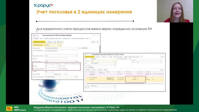 Тема доклада: "1С:Бухгалтерия птицефабрики": эффективный инструмент для решения отраслевых задач на малых и средних птицеводческих предприятиях" Доклад ведущего консультанта-программиста корпоративных проектов "1С-Рарус" в Нижнем Новгороде Марины Федоровой на конференции "Новые информационные технологии в образовании", февраль 2022 г.
