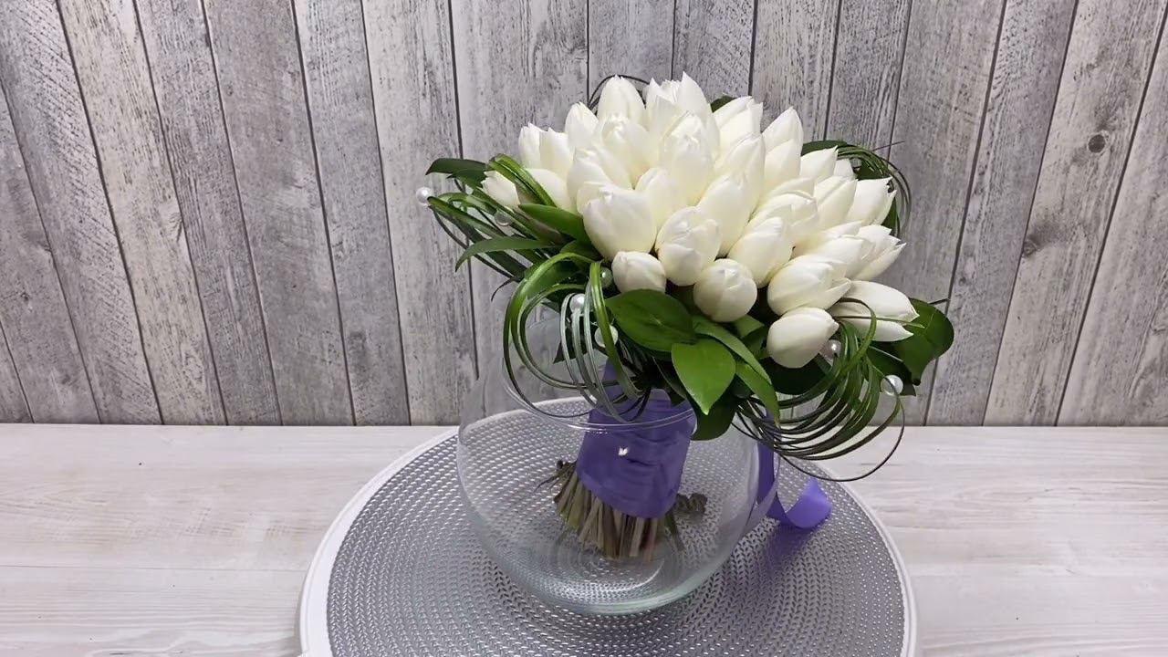 Белый букет невесты из тюльпанов