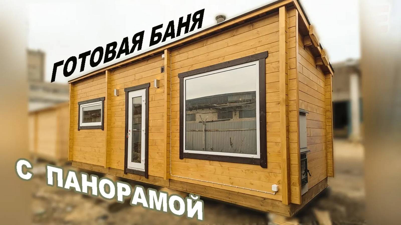 Баня с панорамой, с чугунной печь Искандер и туалетом. Мобильная баня из бруса камерной сушки.