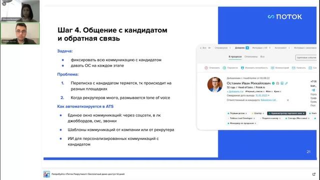 На вебинаре рассказываем о трендах эффективного найма, которые в 2024 году стали реальностью. Узнаете, как можно их адаптировать в вашей компании, как HR стать партнером бизнеса, используя автоматизацию рекрутмента. Делаем обзор ключевых новинок флагманского продукта «Поток Рекрутмент»: как бот-помощник взаимодействует с работными сайтами, как ИИ оценивает резюме кандидатов, как можно тестировать кандидатов из системы в «Потоке», что такое мультипубликация в нескольких городах и др. Спикеры: Сергей Батюк, эксперт по автоматизации компании «Поток» и Жанна Мусаилян, создатель ТГ-канала Recruitment for Friends, эксперт по подбору персонала и бренду работодателя, ex-EY, Яндекс, Hays. Смотрите также: Настройка на успех: автоматизация HR для привлечения и удержания кандидатов https://youtu.be/kFNu8kac8d0?feature=shared HR Перезагрузка 2024. Как искать и трудоустраивать таланты в новом году https://youtu.be/TQLdfk0qDpo?feature=shared Как подбору переехать в ATS всего за час https://www.youtube.com/watch?v=LIAAm_9yc90&list Поток — всё, что нужно для поиска и развития талантов https://youtu.be/7kMm5GAwq5E?feature=shared Как улучшить качество найма. 3 неочевидных инструмента рекрутера. https://youtu.be/e_SBrihTkuY Читайте в нашем блоге: 5 главных HR-трендов на 2024 год https://potok.io/blog/hr-trends/hr-trends-in-russia-2024/ Как работает новое решение для автоматизации найма https://potok.io/blog/hr-overview/potok-and-directum-recruitment-system/ HR-процессы без бумаг — с чего начать цифровизацию кадровых задач https://potok.io/blog/hr-howto/digitalization-of-personnel/ Скоростной наем, развитие руководителей и признание бизнесом. Как меняются HR-процессы в российских компаниях https://potok.io/blog/hr-research/hr-changes-2022/ Самый сок: 20+ проверенных инструкций по подбору, развитию и удержанию сотрудников https://potok.io/blog/hr-howto/hr-pack-2023-2024-advices/ Как правильно оценивать эффективность подбора, какие показатели использовать и как применять аналитику https://potok.io/blog/hr-howto/evaluation-of-effectiveness-of-recruitment/ Оставьте заявку на комплексное решение для автоматизации найма сотрудников в системе «Поток» https://directum.potok.io/?utm_source=blog&utm_content=blog_review «Поток» — система для автоматизации массового и точечного подбора — попробуйте бесплатно «Поток Рекрутмент» Тайм-коды: 05:02 О главных задачах работодателей в 2023 году 06:00 Какие изменения происходили на рынке найма в 2023 году 06:42 Тренды подбора и трудоустройства 2024 08:04 Какие задачи компании ставят на 2024 год 09:01 Какими инструментами будут пользоваться HR-специалисты в 2024 году 10:46 Чеклист: когда необходимо автоматизировать подбор 12:19 Как АТС помогает создать прозрачность для бизнеса 14:36 Как работать с вакансией в «Потоке» 19:05 Как опубликовать вакансию в «Потоке» 20:21 О новой фишке в «Потоке»: Мультипубликация на hh.ru в нескольких городах 21:01 О поиске, подборе и оценке кандидатов в «Потоке» 24:52 Как бот-помощник взаимодействует с работными сайтами 25:56 Как ИИ оценивает резюме кандидатов 26:49 Как можно тестировать кандидатов из системы в «Потоке» 27:40 Общение с кандидатом и обратная связь в «Потоке» 31:38 Интервью с участниками подбора в «Потоке» 35:30 SLA на каждом этапе подбора 35:40 Как формируется оффер в «Потоке» 38:20 Об усовершенствованной аналитике в «Потоке» 43:07 О платформе для автоматизации массового и индивидуального подбора «Поток Рекрутмент»