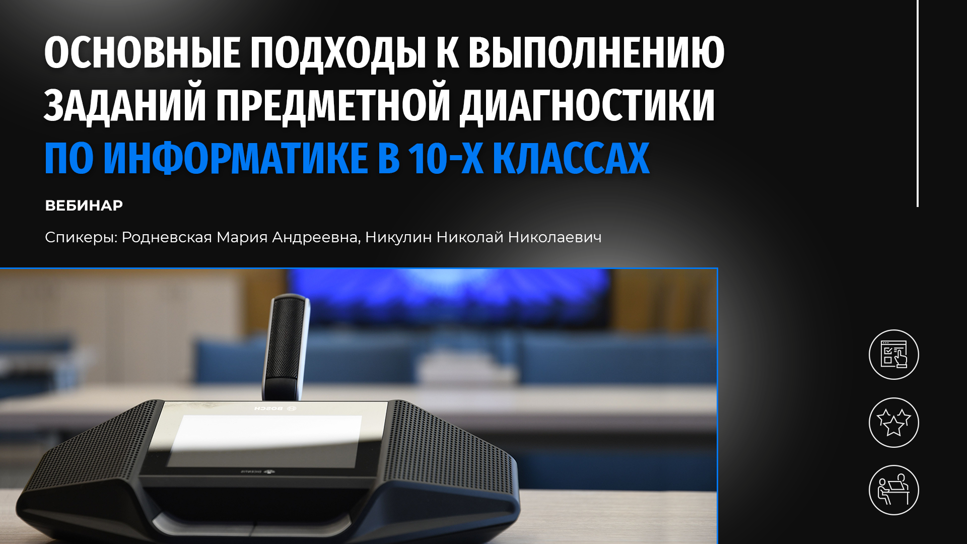 Приглашаем заместителей директоров образовательных учреждений по управлению качеством образования, учителей информатики, преподающих в 10-х классах, и всех желающих посмотреть видеоматериалы, посвященные основным подходам к выполнению заданий диагностики по информатике в 10-х классах, участвующих в реализации городских образовательных проектов. Специалисты Московского центра качества образования Мария Андреевна Родневская и Николай Николаевич Никулин познакомили слушателей с особенностями предстоящей диагностики, помогли разобраться в характере заданий, предложили практические рекомендации, которые позволят школьникам наиболее успешно подготовиться к работе.