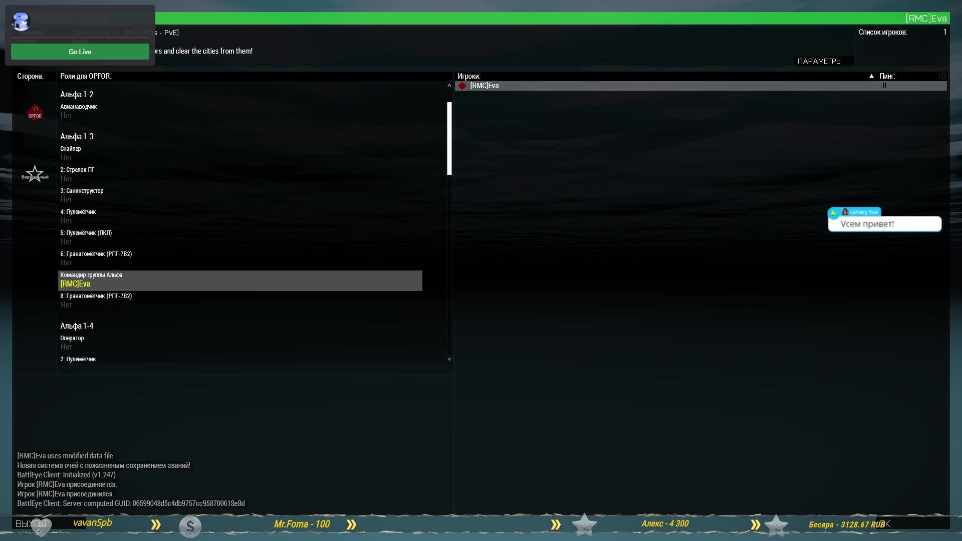 Миссия Доминация, сервер Территория спецназа Сайт Территории спецназа https://zonats.ru/ Мой дискорд https://discord.gg/gkzhHWMW7g #KOTH #kingofthehill #kothrhs #arma3koth #CodeFourGaming #C4G #REDBEAR #RedBearTvT #TvT #редбир #красныймедведь #Территорияспецназа #Доминация #АРМА3 #ARMA3 #АРМА3 #RHS #arma3realwar #REALWAR #модRHS #ARMA3RHS #koth #Eva #lunacyeva #Evolution Я на VK Видео https://vk.ru/video/@evachannel Я на Goodgame https://goodgame.ru/channel/LunacyEva Я на Rutube https://rutube.ru/channel/1157921/ Я на Trovo https://trovo.live/Lunacy_Eva Я на Twitch https://www.twitch.tv/lunacyeva Я на Youtube https://www.youtube.com/@LunacyEva/ Для комплиментиков =)) ! С озвучкой на стриме: https://donatepay.ru/don/Eva http://www.donationalerts.ru/r/lunacyeva Или в тихушку - карта Сбербанка: 2202 2062 0178 2799 В чате стрима приветствуется: - Шутки, песни, анекдоты; - Советы и жалобы=) ; - Капсить можно, но учтите бот не зачитывает капс! В чате не приветствуется: - Ругаться матом; - Прямо и косвенно оскорблять других пользователей в чате; - Заниматься пропагандой расовой и национальной дискриминации; - Тут не место для политики. Моя железяка: https://youtu.be/uheJmrrnXE0 Проц.: Intel Core i7-7700K 4200 МГц; Видео: GeForce GTX1080; Мат.плата: ASUS ROG STRIX Z270F GAMING; Память: DDR4 32Гб KINGSTON HyperX FURY; 2 SSD: 256 Гб Samsung 850 Pro, 1ТБ Samsung 870 QVO; Жест.диск: 2000 Гб 7200 rpm WDC; Охлаждение: Corsair Hydro H100i; Корпус: Zalman Z9 Neo Black; Гарнитура: HyperX Cloud II; Клавиатура: A4Tech G800 3X Fast Gaming; Мышь: Logitech G102; Мониторы: Samsung S19B370B 18.5 и C32JG51FDI 31.5 Support the stream: https://streamlabs.com/lunacyeva1