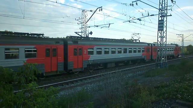 Электропоезд ЭД4М «Волжский Экспресс» сборный сообщением №6528 Самара — Похвистнево. Номера вагонов от составов: 1-й вагон — 1046, 2-й и 3-й вагоны — 0218, 4-й вагон — 1045. Снято 23.07.2013. на перегоне Алексеевская - Кинель, участок ст. Алексеевская - пл. Советы, Куйбышевская ЖД, Самарская область