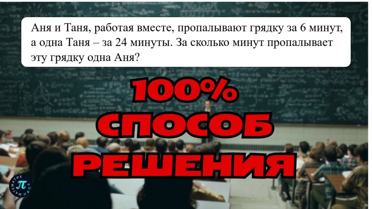 В августе стартует «Летний интенсив» по всей первой части ЕГЭ по профильной математике. Занятия онлайн вместе со мной в маленьких группах, ответы на все вопросы, вся необходимая теория и многое другое только на моем авторском интенсиве! Успей записаться и получи возможность писать ЕГЭ на 70 баллов уже в сентябре! Количество мест ограниченно! Запись на «Летний интенсив» - https://t.me/profimathematic Аня и Таня, работая вместе, пропалывают грядку за 6 минут, а одна Таня – за 24 минуты. За сколько минут пропалывает эту грядку одна Аня? Понравился стиль и формат обучения? Занимайся со мной индивидуально и подготовься к экзамену на Высокий Балл! Для связи ✔Мой телеграмм: https://t.me/profimathematic Остались вопросы? Задай их в комментариях! Не забудь поставить лайк и подписаться на канал ;) #математика #егэ #профильнаяматематика