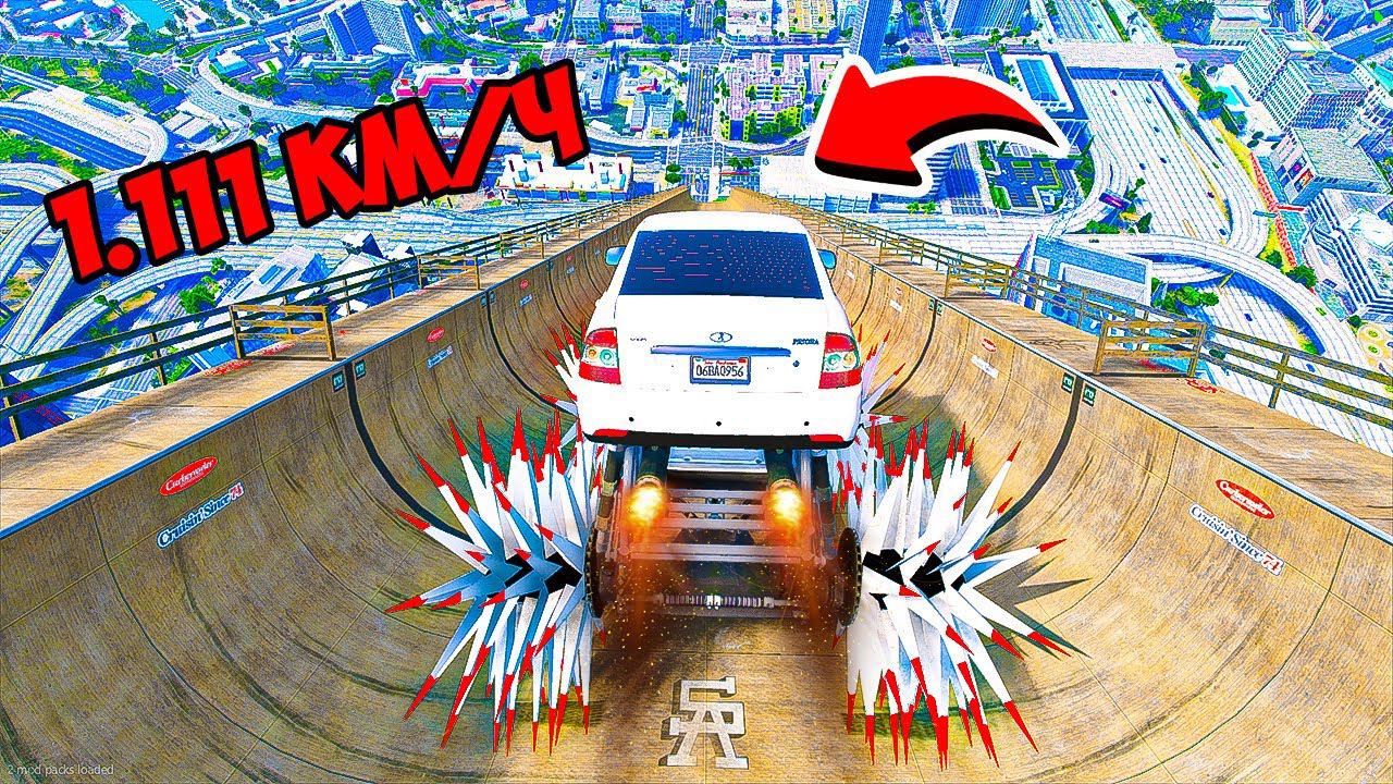 СПУСК БЕЗ ТОРМОЗОВ НА ЛАДЕ ПРИОРЕ С КОЛЮЧКАМИ В ГТА 5 МОДЫ! ЭКСПЕРИМЕНТЫ В GTA 5 ВИДЕО MODS