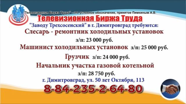 Вакансии и телефоны прямых работодателей в специализированной программе по трудоустройству "Телевизионная Биржа Труда" - г.Ульяновск