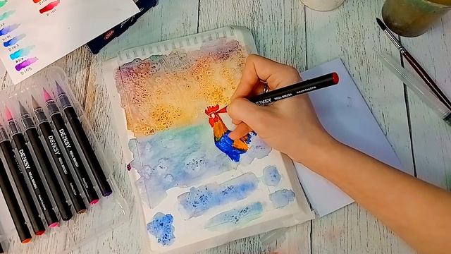 Петушок. Рисуем акварелью. Акварельные маркеры. Бесплатный урок рисования.