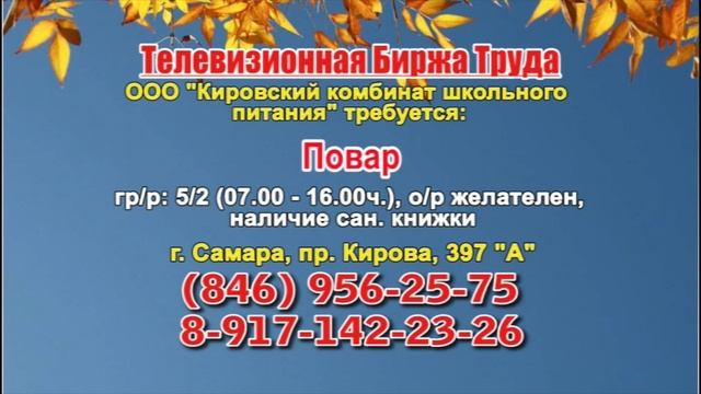 Вакансии и телефоны прямых работодателей в специализированной программе по трудоустройству "Телевизионная Биржа Труда" - г.САМАРА, г.ТОЛЬЯТТИ