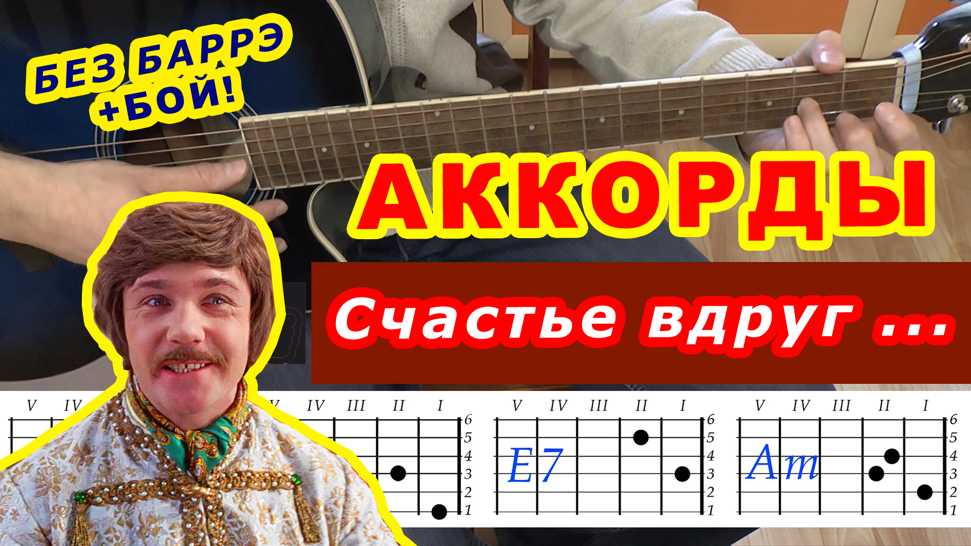 Счастье вдруг аккорды Вдруг как в сказке Разбор песни «Разговор со счастьем» на гитаре без баррэ гитарный бой простые для начинающих вы увидите в этом выпуске. Он предназначен для новичков. Если вы хотели найти разбор песни Счастье вдруг аккорды Вдруг как в сказке «Разговор со счастьем» из к.ф. "Иван Васильевич меняет профессию" разбор песни на гитаре без баррэ на гитаре простые гитарный бой и текст для начинающих под аккомпанемент, вы на правильном пути! По нашему видео уроку вы легко сможете ее разучить. Посмотрите наш Разбор песни «Разговор со счастьем» Счастье вдруг аккорды Вдруг как в сказке из к.ф. "Иван Васильевич меняет профессию" разбор песни на гитаре без баррэ простые гитарный бой и текст для начинающих под аккомпанемент, и вам она понравится. Вы сможете сыграть ее для себя, своих близких родственников, друзей, знакомых, на вечеринке или в походе. Счастье вдруг аккорды Вдруг как в сказке Разбор песни «Разговор со счастьем» из к.ф. "Иван Васильевич меняет профессию" без баррэ разбор песни гитарный бой для начинающих под аккомпанемент очень доступно простые с пояснениями показаны и легко ложатся на гитару. Эта композиция одновременно глубока и содержит лирику и, конечно, нравится людям. Гитара Аккорды Песни для начинающих - это канал с разбором легких популярных песен для тех, кто начинает осваивать гитару и хочет разучить простые аккорды для новичков, например, Счастье вдруг аккорды Вдруг как в сказке Разбор песни «Разговор со счастьем» из к.ф. "Иван Васильевич меняет профессию" разбор песни. В каждом выпуске разобран гитарный бой или аккомпанемент. Готовые разборы можно посмотреть в плейлистах. Разучите песню Счастье вдруг аккорды Вдруг как в сказке Разбор песни «Разговор со счастьем» из к.ф. "Иван Васильевич меняет профессию" без баррэ разбор на гитаре простые гитарный бой и текст для начинающих под аккомпанемент по нашему видео уроку, это ваш правильный выбор. Много хороших песен, которые мы знаем, можно разучить на гитаре по нашим видео урокам, в которых доступным образом показана табулатура аккордов, как на грифе гитары, так и на схеме, при этом не обязательно знать ноты. Вы сможете спеть эти песни дома для себя или родственников и знакомых, выступить на концерте в школе или на сцене, исполнить под гитару у костра в походе, например, Счастье вдруг аккорды Вдруг как в сказке Разбор песни «Разговор со счастьем» из к.ф. "Иван Васильевич меняет профессию" на гитаре разбор песни. Песни подобраны для их быстрого разучивания и в наиболее подходящей тональности. Легкие аккорды украсят ваше пение. В наших выпусках есть армейские, дворовые, эстрадные, рок песни и композиции, шансон и хард рок, серенады, романсы и баллады. Посмотрите наши плейлисты и подберите репертуар для себя. Подпишитесь на наш канал и будьте с нами! Желаем удачи! Счастье вдруг аккорды Вдруг как в сказке Разбор песни «Разговор со счастьем» из к.ф. " Иван Васильевич меняет профессию " на гитаре, песня, написанная композитором Александром Зацепиным на стихи поэта Леонида Дербенёва в 1972 году.: