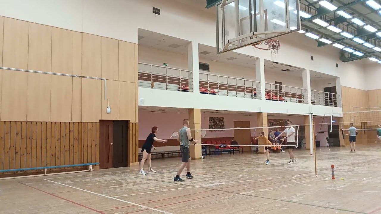 Тренировочная игра в бадминтон через сетку. Играют любители, новички и опытные бадминтонисты. Игра в Лестехе (МГУЛ ранее, сейчас называется филиалом Бауманки). Хочешь тоже играть? Приходи - https://badminton77.ru/map/4/ #badminton #badmintonlovers #badmintonrussia #lesteh #ЛесТех #бадминтон
