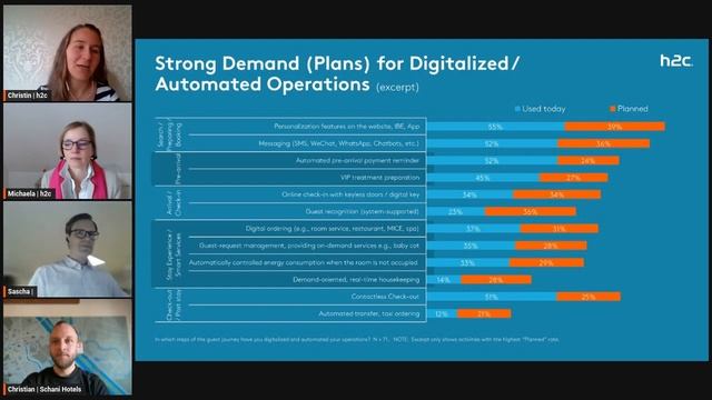 We'll be presenting the key findings from our latest research study that provides insights into digital hotel operations and related technology solutions. Our guests Sascha Dalig (Hotelier & Hospitality Consultant, Keynote Speaker & Moderator) and Christan Müller (Group Manager Technology @Schani Hotels) will join Michaela and Christin (h2c) to discuss the implications of the study and how #digitalization is changing the #hotel industry. Key discussion points will include - The key drivers of digitalization and actions to improve guest satisfaction - The biggest challenges and opportunities of digital operations and much more.