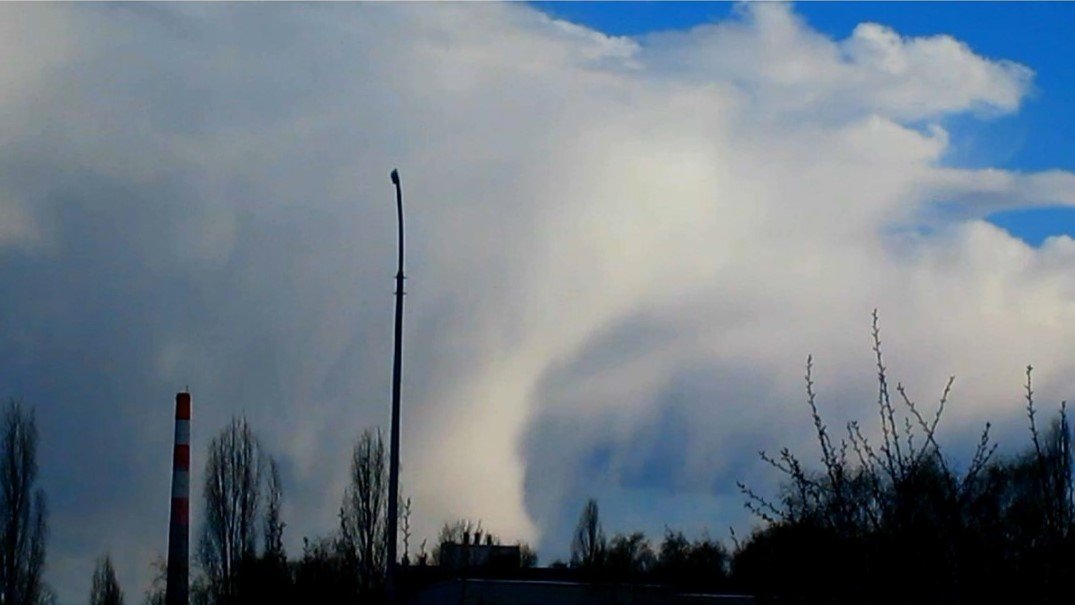 Сняла на видео вот такое необычное облако. Наверное, там идет снег...