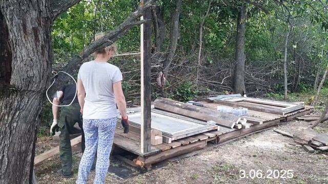 Делаем стойки и окна в дровнике.
