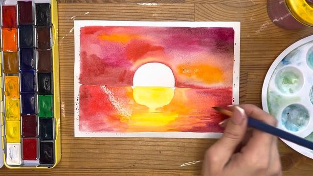 Как нарисовать закат карандашом и акварелью начинающим | Рисунок для детей