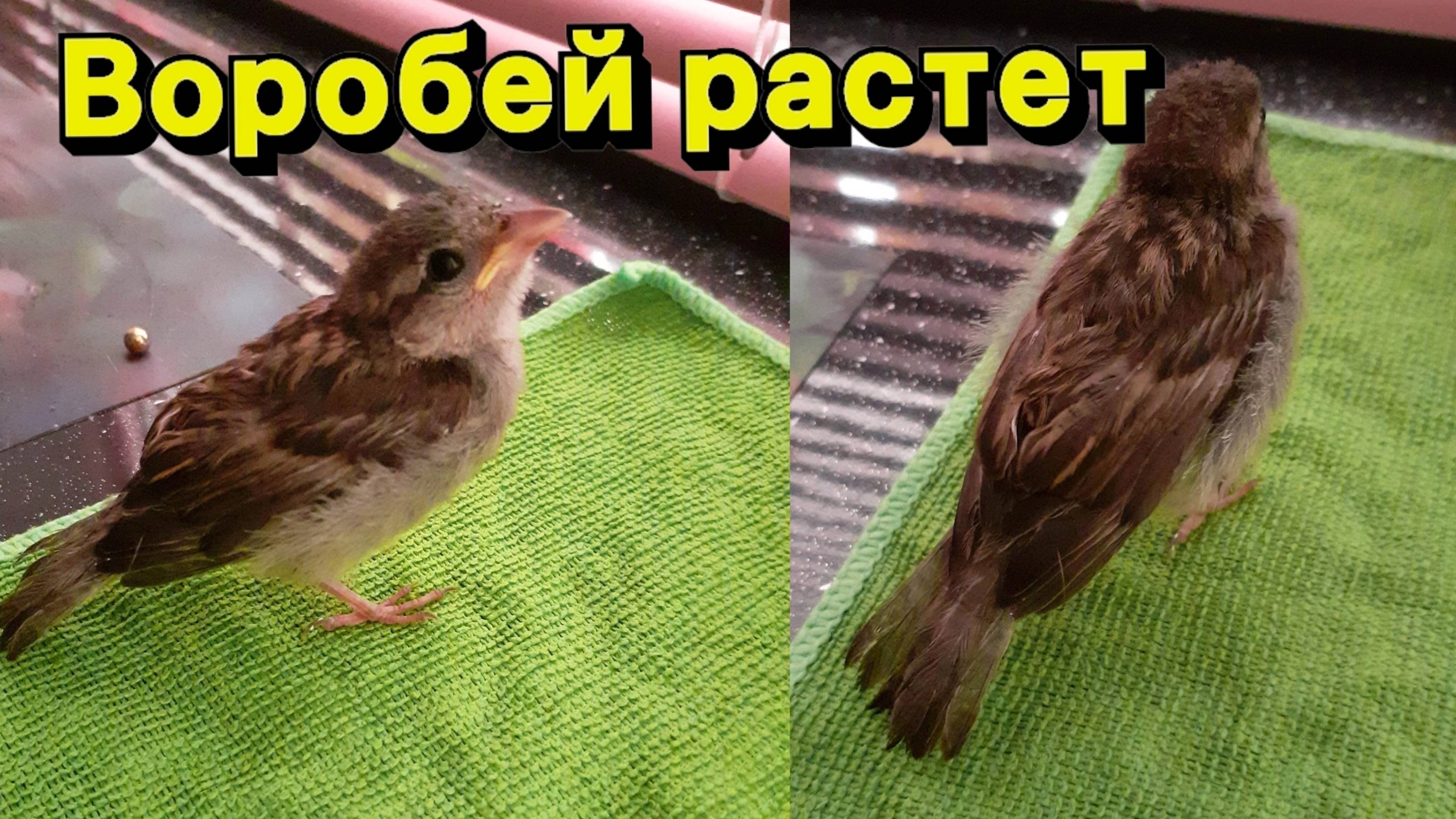 ПТЕНЕЦ ВОРОБЬЯ растет! Домашний воробей выкормыш #спасениептенца