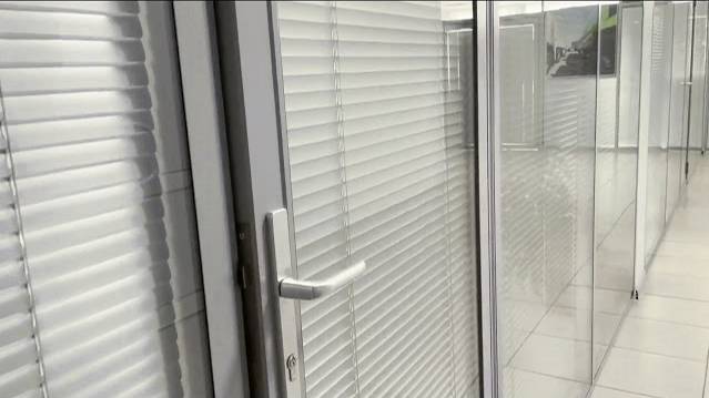 Возведение офисных перегородок и дверей из стекла с двойным витражом и жалюзи