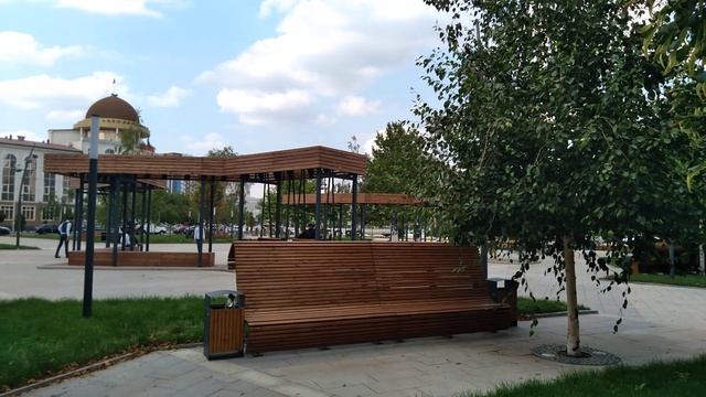 Грозный Мол парк. Много лавочек и качелей.