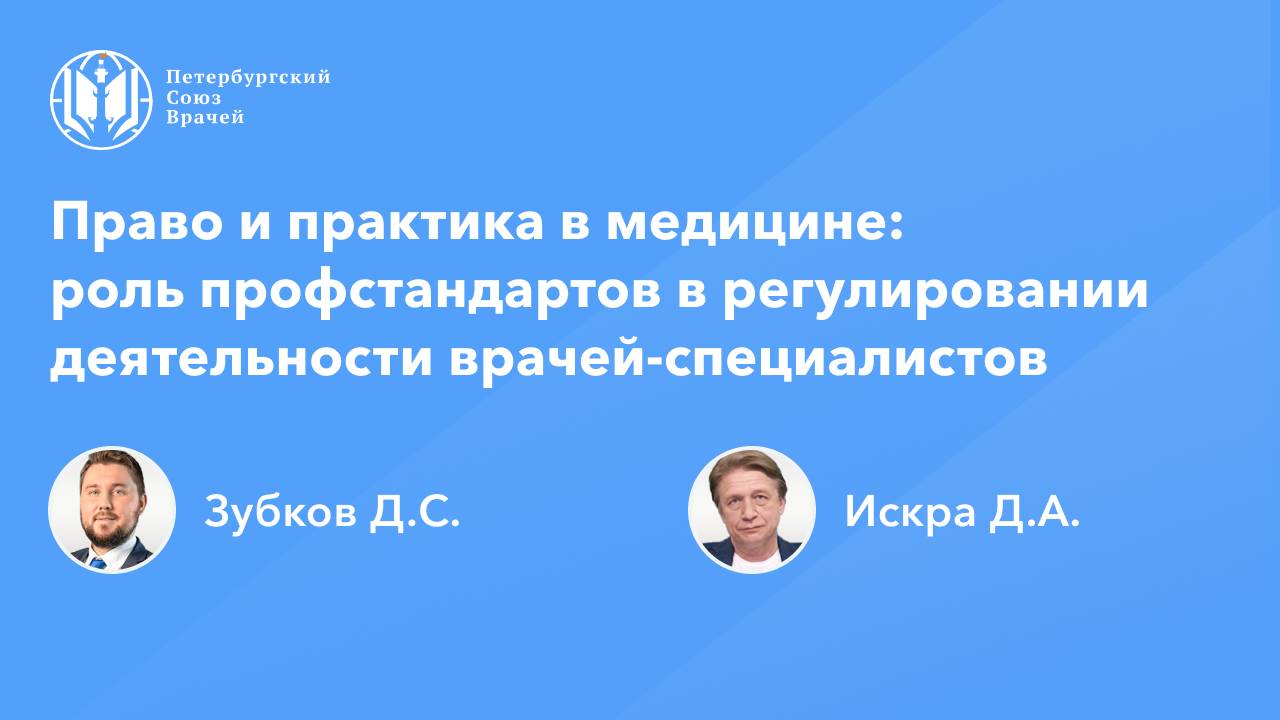 Право и практика в медицине: роль профстандартов в регулировании деятельности врачей-специалистов Дата проведения: 06.11.2024, 20:00 Страница мероприятия: https://spb.doctor/i/241106/ Программа: 1. Роль профстандартов в регулировании деятельности врачей-специалистов Зубков Дмитрий Сергеевич 2. БАД в практике врача. Медицинские и юридические аспекты Искра Дмитрий Анатольевич 3. Ответы на вопросы О семинаре: В онлайн-семинаре будут рассмотрены вопросы: значение профессиональных стандартов в регулировании деятельности врачей-специалистов, функции профстандартов, ответственность и обязательность применения профессиональных стандартов.