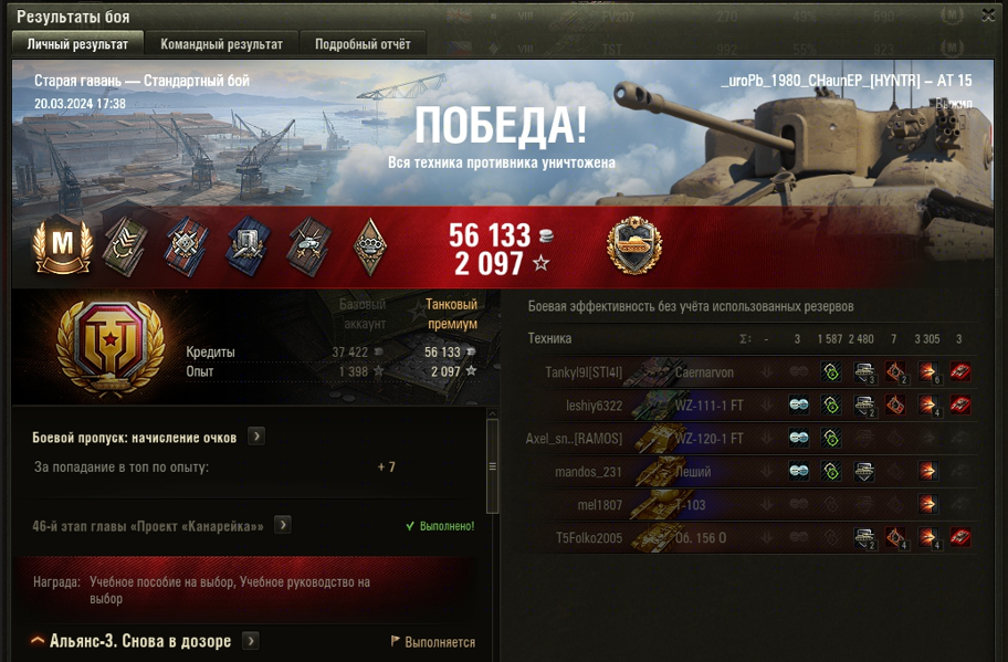 СТАРАЯ ГАВАНЬ МАСТЕР на АТ 15 ОПЫТ 1398 СУММАРНЫЙ УРОН 4892 медаль СТАЛЬНАЯ СТЕНА