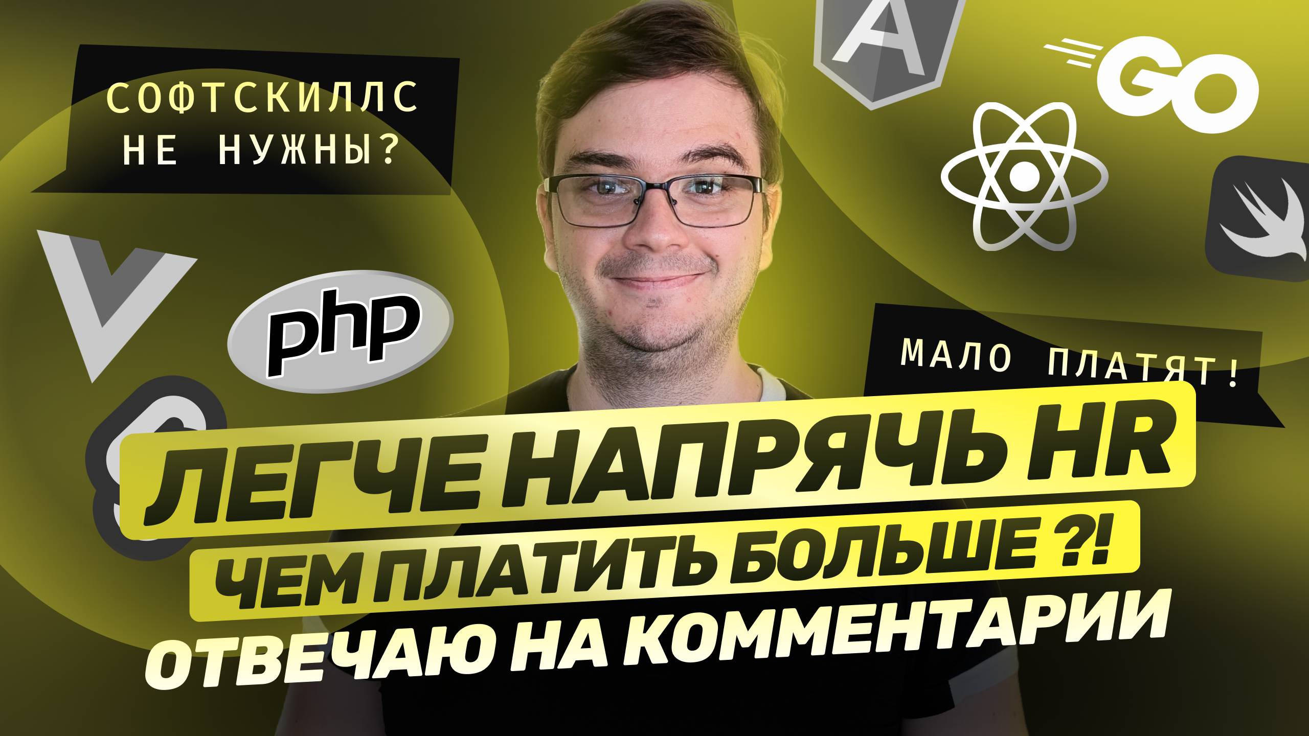 В этом видео отвечу на ваши вопросы и комментарии. На самом деле, отобрали около 40 интересных вопросов, но в основной выпуск поместилась только часть. Невошедшее будем публиковать в shorts, подписывайтесь! Расскажу про свой путь становления в разработке, как развивался от фрилансера на php до CTO с несколькими командами, а потом дошел и до своей студии. Отвечу на вопросы особенно внимательных зрителей про терминалы и мониторы, которые использую. Также обсудим текущие тренды развития фреймворков, готовность работодателей достойно оплачивать труд разработчиков и другие вопросы, о которых вы спрашивали в комментариях. Телеграм-канал с новостями веб-разработки, полезными материалами, возможностью участвовать в карьерных консультациях, мок-интервью и активным чатом на 4 000 ребят с самым разным опытом, присоединяйтесь! ✈️ https://t.me/purple_code_channel 📚 Десятки доступных курсов по разработке, тестированию и DevOps на нашей супер-платформе — https://purpleschool.ru/?utm_source=rutube&utm_medium=link&utm_campaign=qa1 Бесплатные материалы 🗂️ Карьерные пути для развития в разработке под вашу ситуацию — https://purpleschool.ru/skills?utm_source=rutube&utm_medium=link&utm_campaign=qa1 🗂️ Курс «Основы разработки» — https://purpleschool.ru/course/code-basics?utm_source=rutube&utm_medium=link&utm_campaign=qa1 🗂️ Курс «CSS Flexbox» — https://purpleschool.ru/course/flexbox?utm_source=rutube&utm_medium=link&utm_campaign=qa1 Таймкоды 0:00 - Интро 0:29 - Вопрос 1: Что за терминал, где вы пишете? 1:22 - Вопрос 2: Нужно ли разработчику уметь писать тесты? 2:59 - Вопрос 3: Я до сих пор не могу понять. Почему React такой популярный!? 4:43 - Вопрос 4: Ты уже рассказывал, почему у тебя один монитор и он 16:10? 5:47 - Вопрос 5: Легче напрячь HR, чем платить разработчику!? 7:15 - Вопрос 6: А где вы учились разработке? Сколько лет на это ушло? 9:55 - Вопрос 7: Сравнение SSR и CSR 13:17 - Вопрос 8: Что важнее Hard или Soft скиллы? 14:29 - Аутро