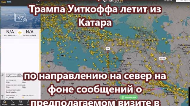 Самолет спецпосланника Трампа Уиткоффа летит из Катара по направлению на север в сторону России