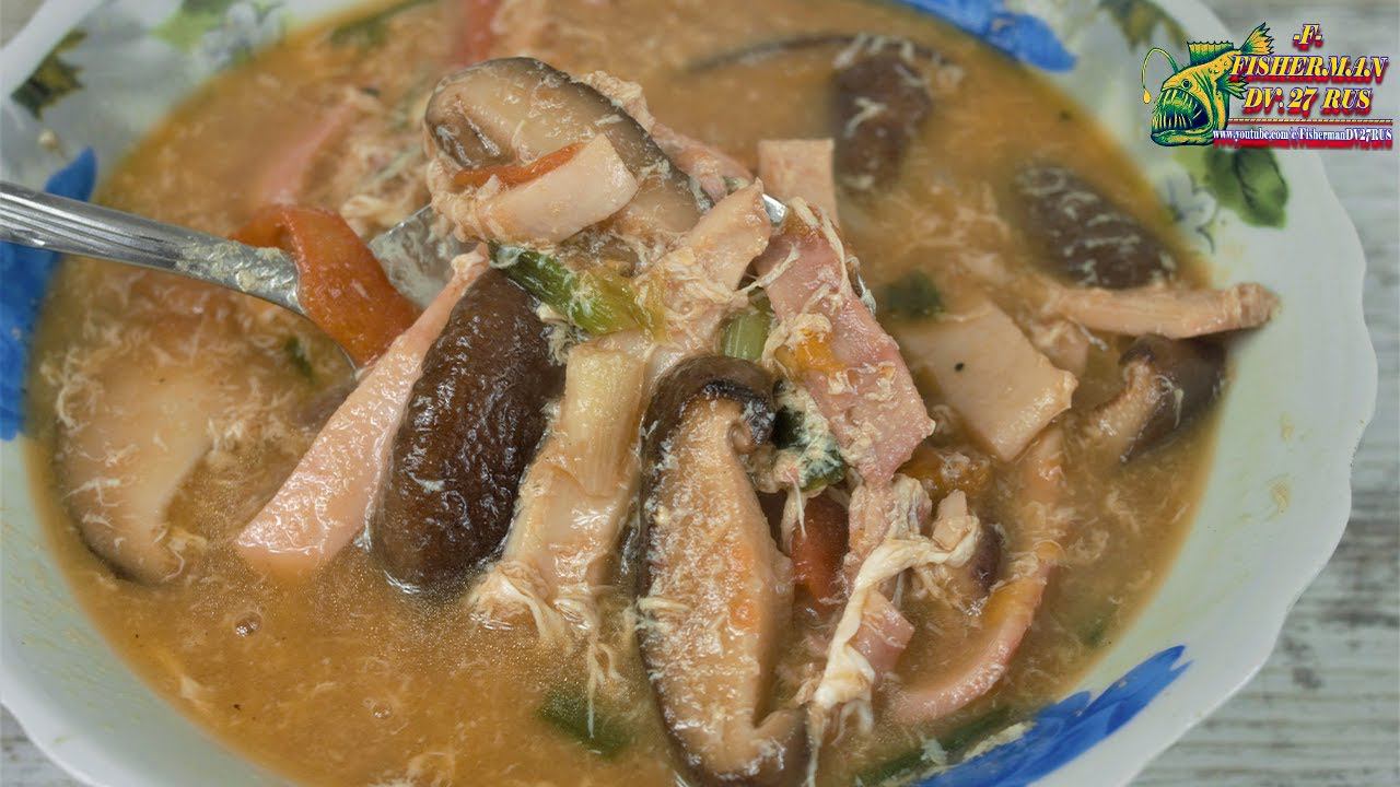 Традиционный суп Китайской кухни с сушёным кальмаром и грибами, не хуже чем, суп том ям