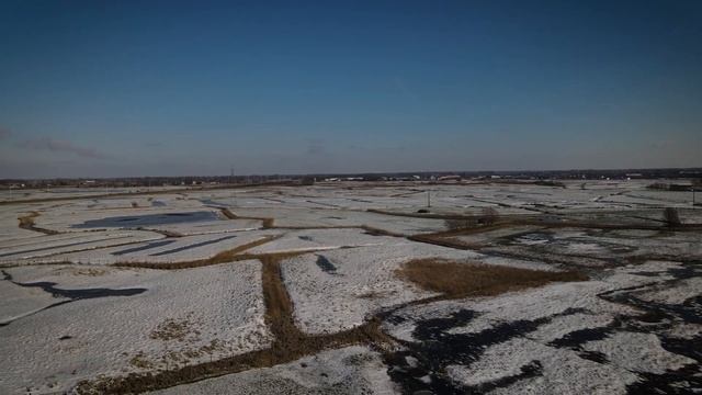 Flying in the fields with snow put quality in 4k for the best imaging