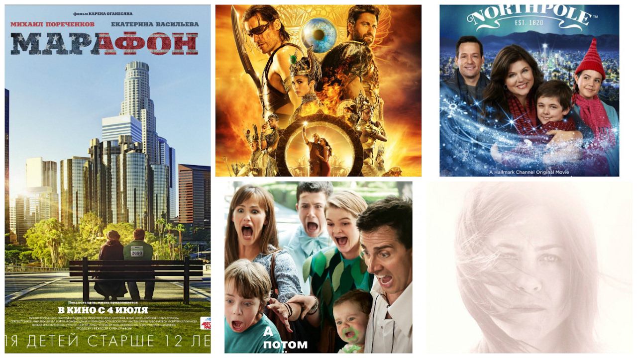 Фильмы из видео: Торт https://www.kinopoisk.ru/film/819752/ Боги Египта https://www.kinopoisk.ru/film/682886/ Марафон https://www.kinopoisk.ru/film/647668/ Чудо Рождества (Северополис) https://www.kinopoisk.ru/film/842714/ Александр и ужасный, кошмарный, нехороший, очень плохой день https://www.kinopoisk.ru/film/557950/ Ваша Любаша.