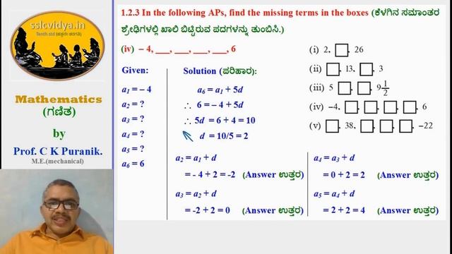 Ch.1 Ex1.2-A Arithmetic Progressions by Prof. C K Puranik