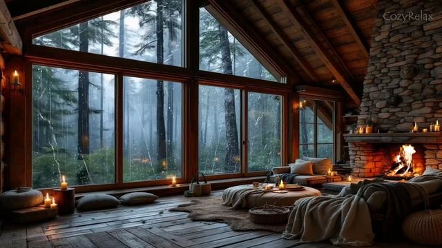 Домик в лесу с дождём и камином — расслабляющая атмосфера