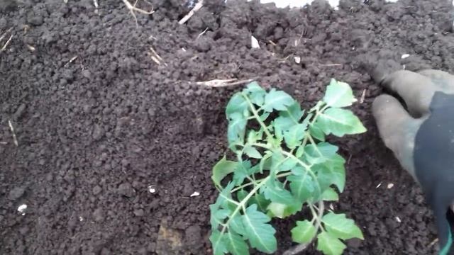 Высаживаем в открытый грунт помидоры.