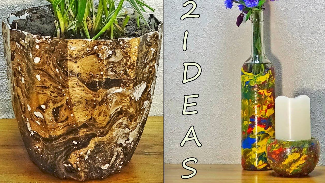 Just look what beauty can be done with ordinary water and spray paints! You only need to spend a few minutes to create cool things with a unique design. Watch our video and you will learn how to do it! Materials: • Large water tank; • Polyethylene film; • Water; • Aerosol paints of different colors; • Stick for stirring; • Glass bottle, glass-candlestick, flower pot (or whatever you want to color). Production Music courtesy of Epidemic Sound" www.epidemicsound.com" decoration ideas, craft ideas, handicraft, decoração de castiçal de vidro, decoración rápida, decoração de tinta spray, decoración de botellas, decoração de vaso de flores