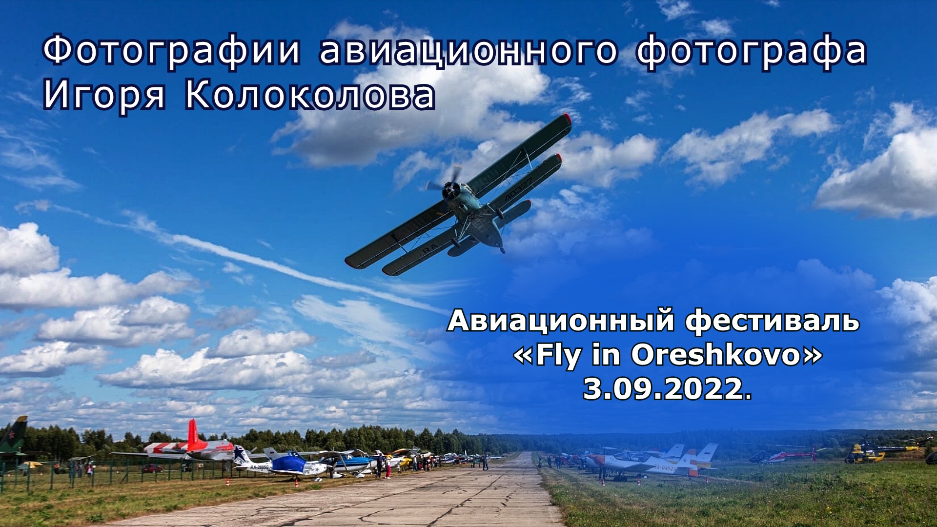 3 сентября 2022 года в Калужской области на аэродроме "Орешково" состоялось сразу два ярких события: Fly-in Oreshkovo и "Авиадевичник". Фестиваль Fly-in Oreshkovo третий год подряд собирает участников и единомышленников, влюбленных в небо, из разных городов нашей страны. Гости мероприятия могли наблюдать за пилотажными выступлениями, кроме того в этом году на фестивале состоялось торжественное открытие музея авиации. В Fly-in Oreshkovo также приняли участие профессиональные пилоты-спортсмены Русских авиационных гонок. Видеоролик составлен из фотографий сделанных авиационным фотографом и лётчиком Игорем Колоколовым. Видеомонтаж: Александр Яскевич (belenkur) 2022 год