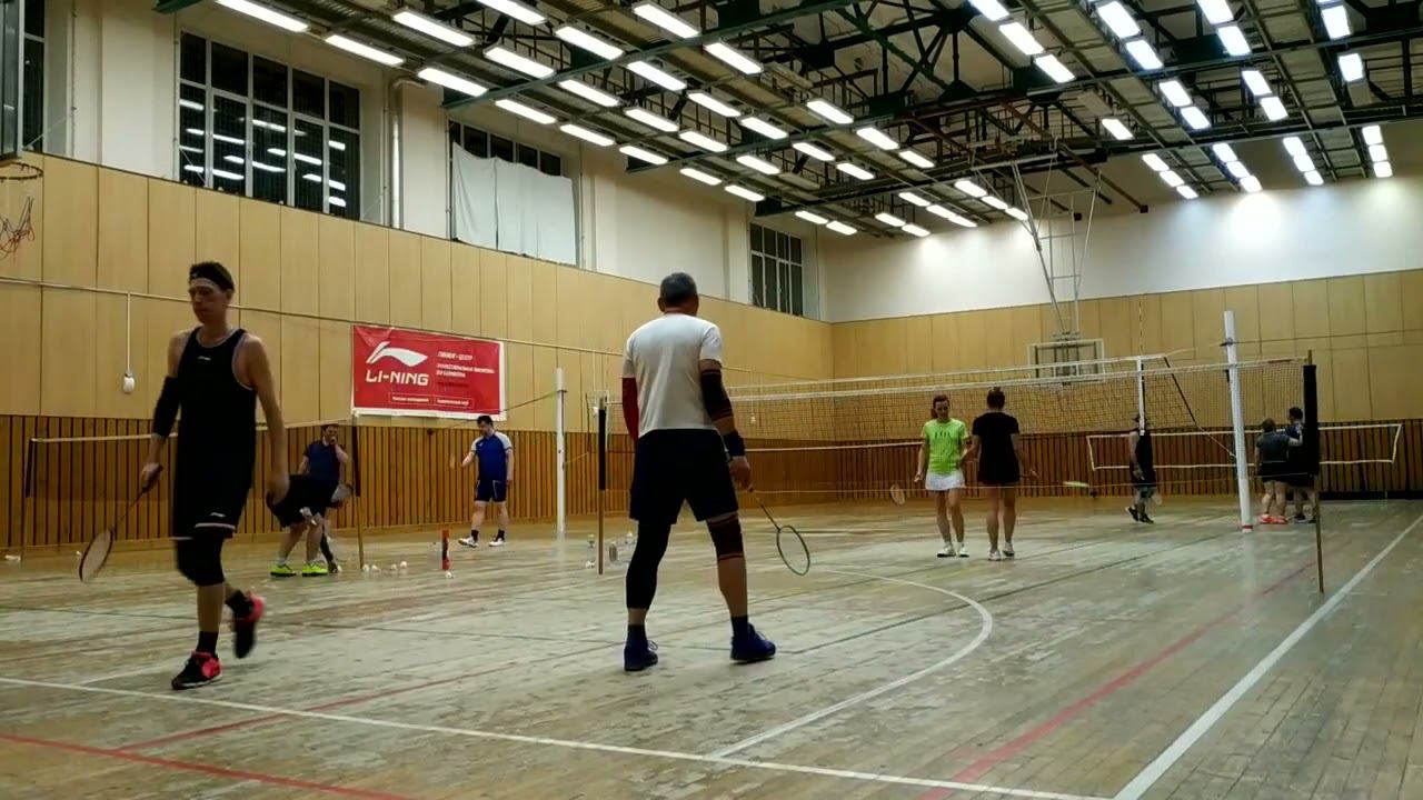 Тренировочная игра в бадминтон через сетку. Играют любители, новички и опытные бадминтонисты. Игра в Лестехе (МГУЛ ранее, сейчас называется филиалом Бауманки). Хочешь тоже играть? Приходи - https://badminton77.ru/map/4/ #badminton #badmintonlovers #badmintonrussia #lesteh #ЛесТех #бадминтон