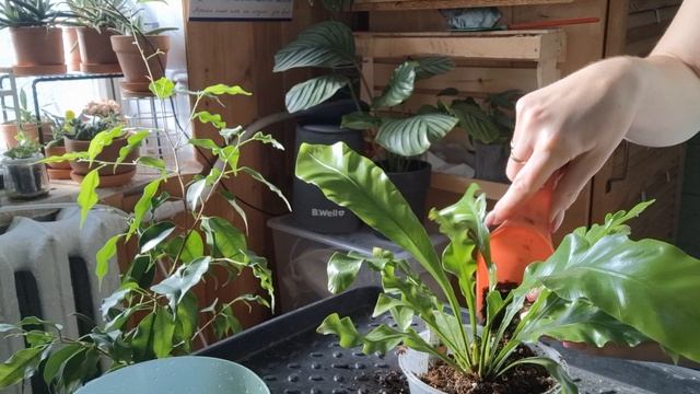 Папоротник "Асплениум нидус", пересаживаю на фитильный полив 🪴👌👍