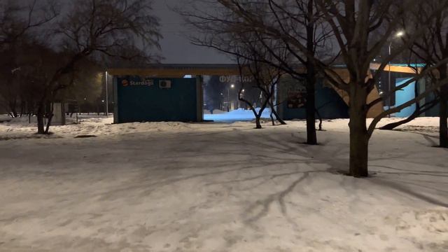 Прогулка по вечернему парку во время снегопада [4K 60fps HDR]