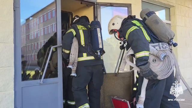 💬По легенде, на 2 этаже здания в одном из учебных классов произошло короткое замыкание электропроводки с последующим возгоранием. Огонь и едкий дым быстро распространились по всему корпусу. В момент возникновения пожара дымовой датчик зафиксировал дым и передал сигнал на пульт управления, находящийся у дежурного. Согласно инструкции дежурный персонал сразу же сообщил о происшествии в пожарную охрану. К месту возгорания были направлены подразделения Костромского пожарно-спасательного гарнизона по повышенному номеру вызова. 📸Как проходили учения - смотри в нашей подборке🎥