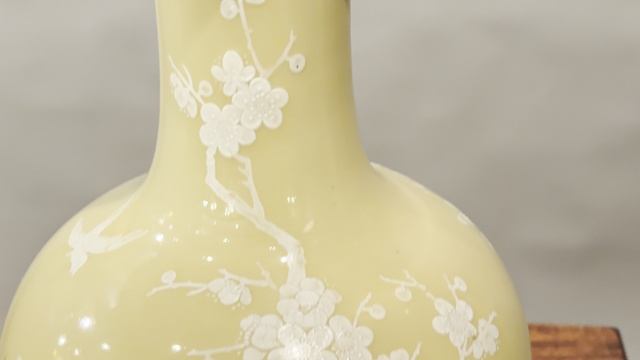 Фарфоровая ваза с рельефным декором в стиле шинуазри (Китай, 1940–1950-е гг.) - https://gallerique.ru/decoration/tproduct/344657407322-farforovaya-vaza-s-relefnim-dekorom-v-st Антикварная ваза выполнена из плотного глазурованного фарфора тёплого охристо-жёлтого оттенка. Поверхность украшена тонким белым рельефным орнаментом: цветущая ветвь с птицей опоясывает корпус, создавая мягкий, текучий рисунок. На дне вазы присутствует клеймо с иероглифами, отсылающее к периоду правления императора Цяньлуна (1736–1795). Подобные клейма широко использовались китайскими мастерами XX века как знак уважения к «золотому веку» фарфора, поэтому они указывают не столько на точную датировку, сколько на преемственность традиции. По стилистике и исполнению предмет относится к экспортному китайскому фарфору 1940–1950-х годов. Китайские глазури ценятся за особую глубину цвета и сложность состава: многослойное нанесение и высокий обжиг создают эффект «внутреннего свечения», благодаря которому поверхность кажется живой и меняющейся при разном освещении. В сочетании с рельефным декором такая глазурь придаёт вазе особый объём и справедливое впечатление тонкой работы с материалом. Как использовать в интерьере: • Как самостоятельный декоративный объект на комоде или консоли • В составе эклектичной композиции с деревом, латунью или текстилем • Для добавления тёплого цвета и мягкой пластики в классическом или современном пространстве