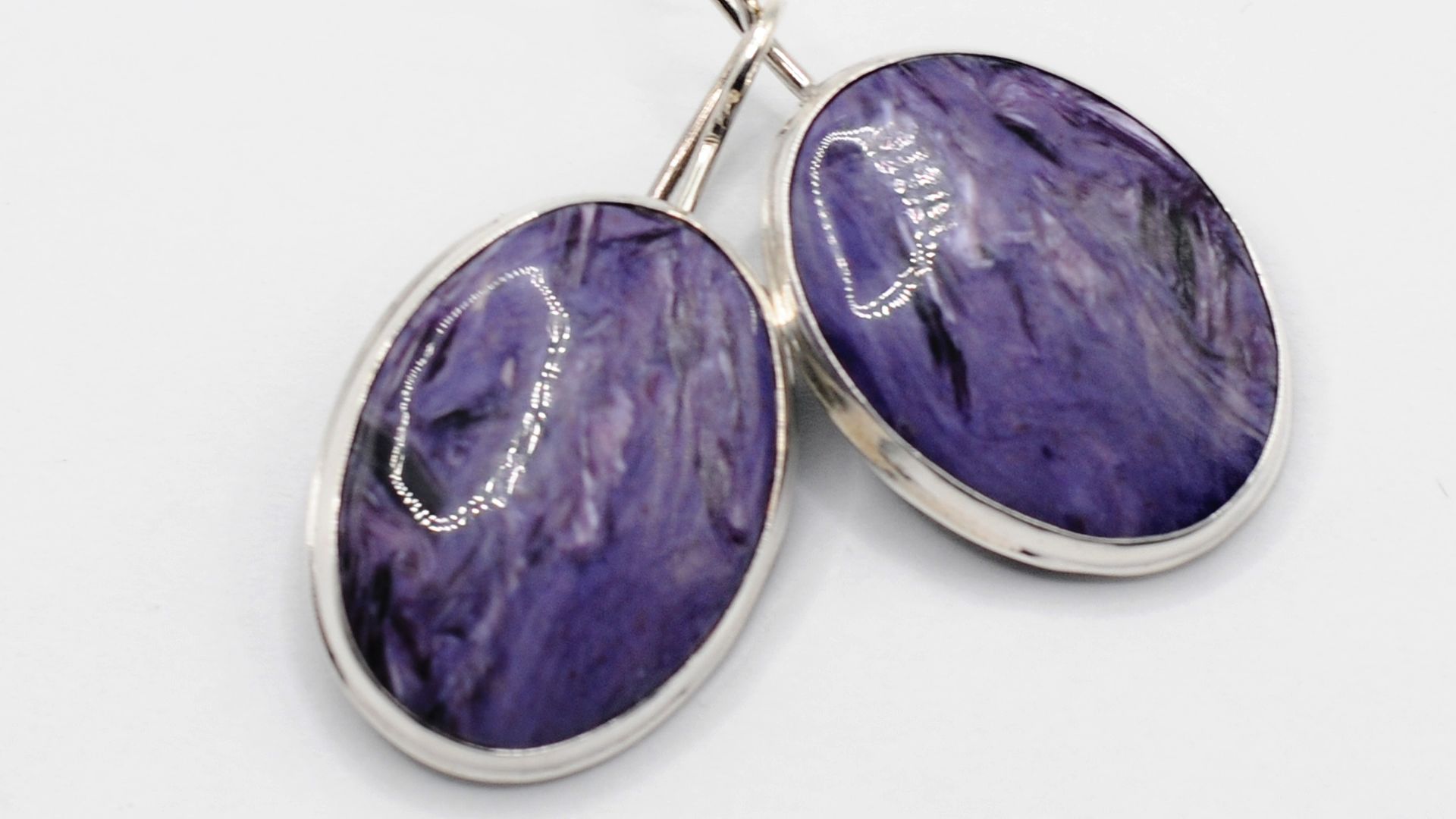 Серьги Чароит Экстра (р. Чара, Забайкалье)