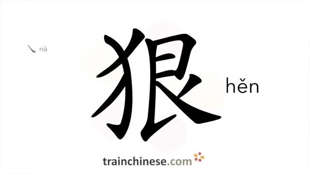 狠 (hěn) ruthless; relentless; firm; resolute; to suppress; harden