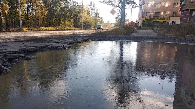 Летнее утро в Сусумане. Ледок на лужах. Колыма. Как в том фильме - Любишь ледок, люби и холодок. Ночью было -7. Наверное все-таки лето кончается