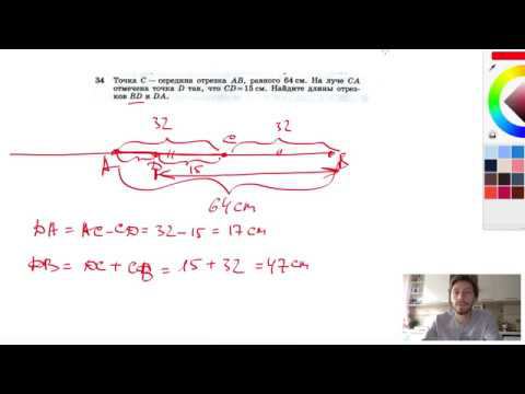 №34. Точка С — середина отрезка AB, равного 64 см. На луче СА отмечена точка D так, что CD=15см. Найдите длины отрезков BD и DA. Мой второй канал для подготовки к ЕГЭ и ОГЭ - https://www.youtube.com/ЕвгенийСумин Инстаграм - https://www.instagram.com/EGE_OGE.math Личный инстаграм - https://www.instagram.com/ee_sumin VK - https://vk.com/evgeniysumin FB - https://www.facebook.com/EvgeniySumin