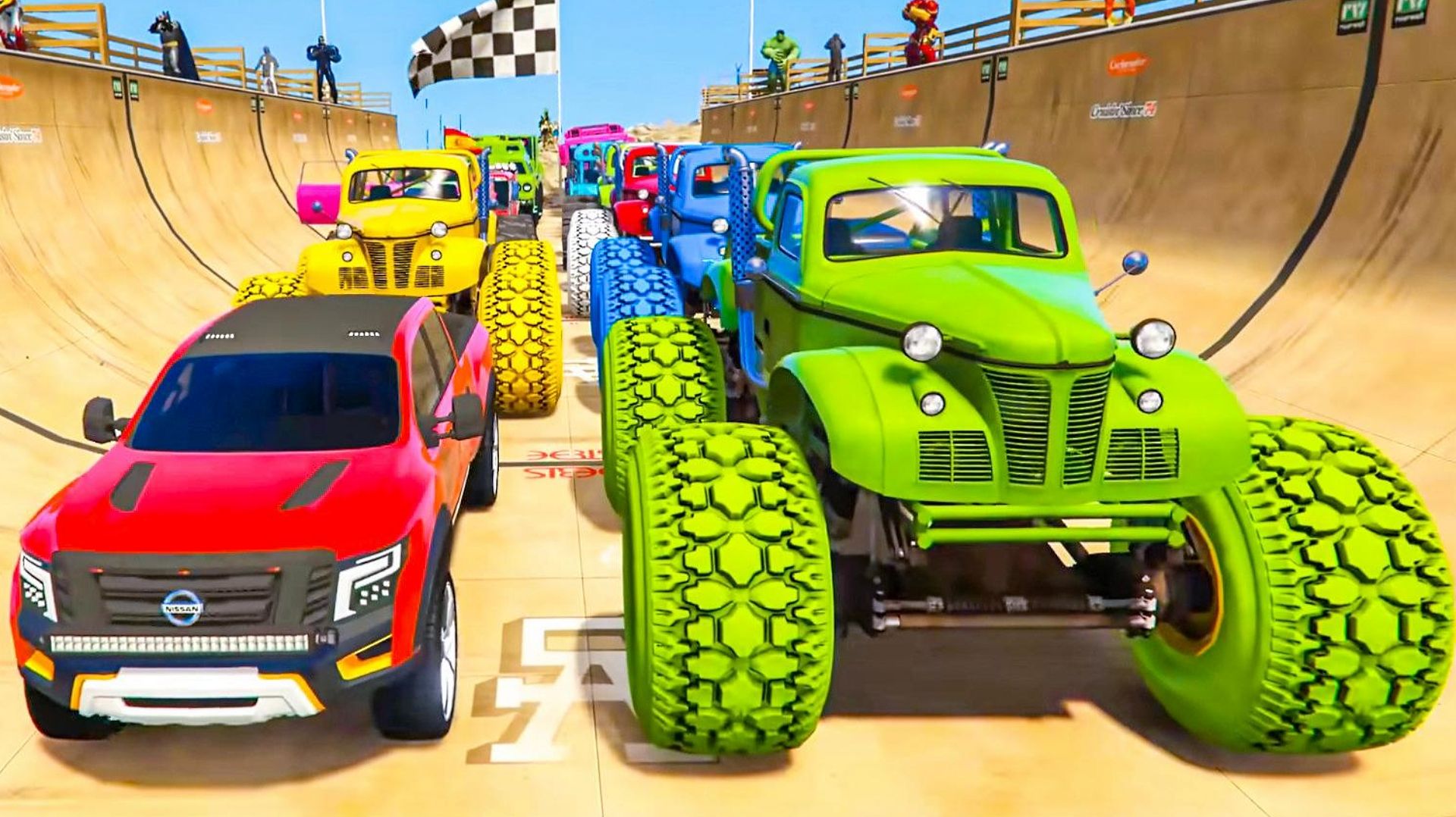 Человек-паук Супер Гонки на машинах на множестве рамп! Эпические трюки супергероев на монстр-траках
