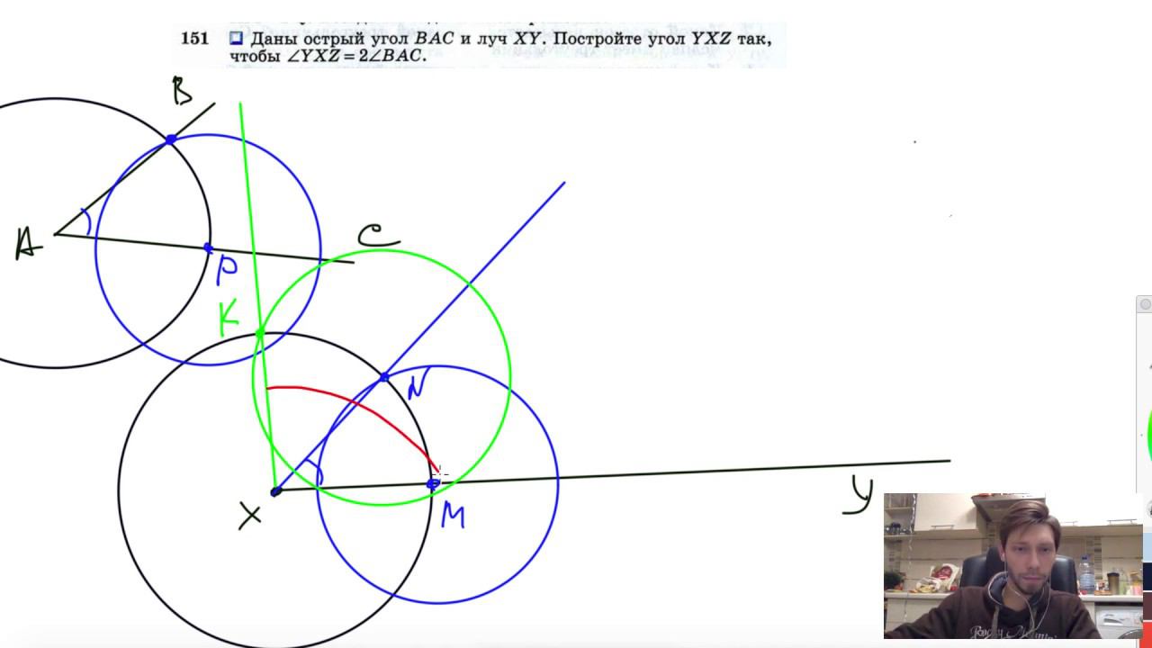 №151. Даны острый угол ВАС и луч XY. Постройте угол YXZ так, чтобы ∠YXZ = 2∠BAC. Поддержать канал рублём - 5469400944002125 (Сбербанк) Мой второй канал для подготовки к ЕГЭ и ОГЭ - https://www.youtube.com/ЕвгенийСумин Инстаграм - https://www.instagram.com/EGE_OGE.math Личный инстаграм - https://www.instagram.com/ee_sumin VK - https://vk.com/evgeniysumin FB - https://www.facebook.com/EvgeniySumin