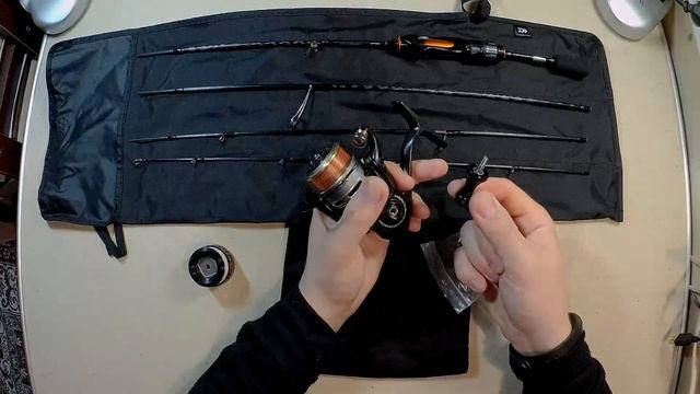 Сложившийся и работоспособный комплект, который я беру в поездки. Четырёхчастный Daiwa Iprimi до 3х грамм. Лёгкий, красивый, довольно редкий. Арийный, но пригодный для ловли на мормышку. Катушка Sakura Tsubaki - Ryobi для Европы. Тоже совсем не частая. В цвет, в класс, в вес. Лёгкий ход, хорошая укладка лески, надёжный фрикцион. Беру с собой две шпули - с леской и нанофилом. Довольно удачный ультралайтовый комплект.