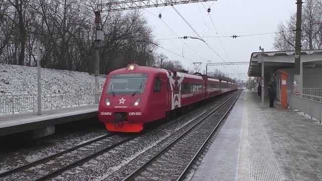 Эл.-поезд ЭД4МКМ-АЭРО-0001 "Аэроэкспресс" (ТЧ-50) пригородный поезд № 7135 Москва — а/п Домодедово.