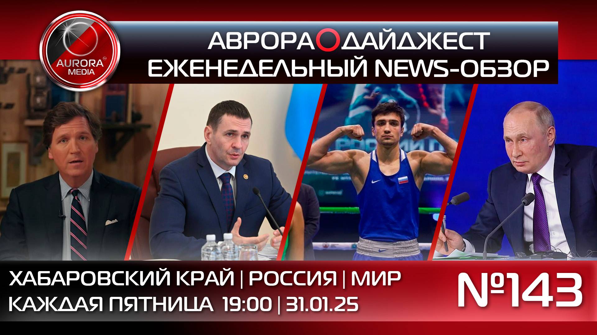 АВРОРА⭕️МЕДИА ЕЖЕНЕДЕЛЬНЫЙ ВИДЕО NEWS-РАЗБОР НЕДЕЛЯ | 24.01.2025 - 31.01.2025 АВРОРА⭕️ДАЙДЖЕСТ №143 Содержание: 0:00 Начало 0:30 В этом выпуске НОВОСТИ ХАБАРОВСКОГО КРАЯ 01:21 Дмитрий Демешин и начальник Дальневосточной железной дороги обсудили направления сотрудничества 02:39 Глава региона поручил проработать вопрос о профессиональной переподготовке участников СВО, не имеющих высшего образования 03:55 Учебно-методический сбор руководителей органов управления по линии ГО и ЧС края прошел в Хабаровске 05:24 Работы по сносу сгоревшего здания музыкального театра начались в Хабаровске 06:24 Спортсмены края завоевали медали кубка России по боксу НОВОСТИ РОССИИ 07:25 В России с 1 февраля проиндексируют свыше 40 соцвыплат и пособий 08:30 Владимир Путин разрешил Зеленскому участвовать в переговорах по Украине НОВОСТИ МИРА 09:11 Такер Карлсон заявил о попытках администрации Байдена убить Владимира Путина 10:06 Пожары в Калифорнии нанесли ущерб на сумму более $250 млрд || Телеграмм-экосистема А⭕М: | АВРОРА МЕДИА @aurora_media https://t.me/aurora_media | АВРОРА НОВОСТИ @news_aurora https://t.me/news_aurora | АВРОРА ХАБАРОВСК @khv_aurora https://t.me/khv_aurora | АВРОРА ЛАЙФ @life_aurora https://t.me/life_aurora | АВРОРА СПОРТ @sport_aurora https://t.me/sport_aurora | АВРОРА ГЕРЛС @girl_aurora https://t.me/girl_aurora | АВРОРА ХАЙТЕК @ht_aurora https://t.me/ht_aurora | АВРОРА ПЕРСОНЫ @people_aurora https://t.me/people_aurora | АВРОРА ИНСАЙД @media_aurora https://t.me/media_aurora | АВРОРА КРИМИНАЛ @crime_aurora https://t.me/crime_aurora | АВРОРА МОЛОДОСТЬ @aurora_young https://t.me/aurora_young || Aurora_Media: | Российское Информационное Агентство | +7(4212)900-900 media@auroragroup.info | +7(909)800-71-11 messenger