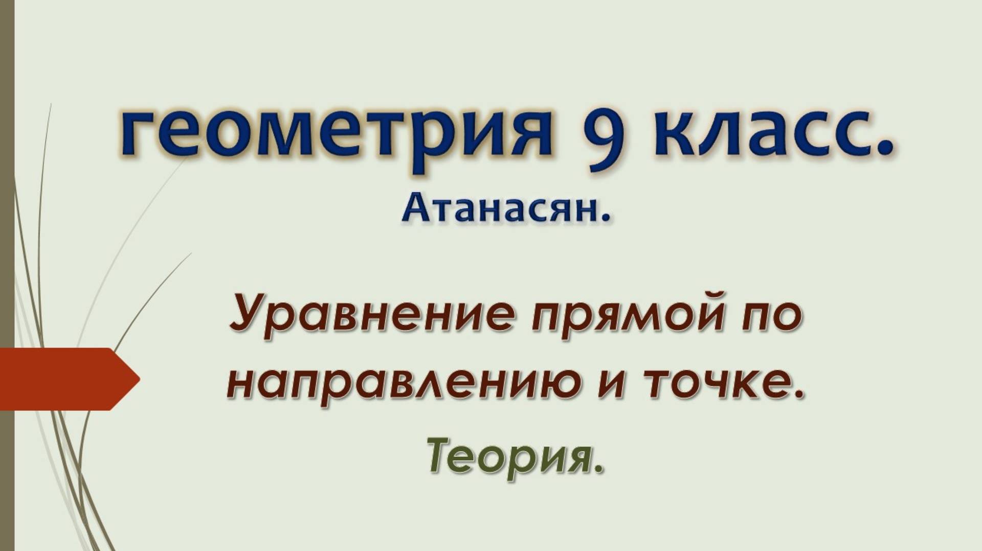 https://dzen.ru/profile/editor/irinaklok https://vkvideo.ru/@club228129393 Геометрия 9 класс по учебнику Атанасяна. 00:00:00 Составляем уравнение прямой, заданной направлением и точкой, через которую она проходит (СПОСОБ 1) 00:08:54 Уравнение пучка прямых. 00:16:50 СПОСОБ 2